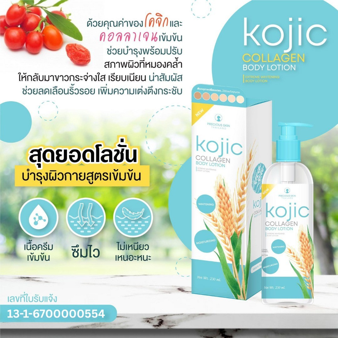 Precious Skin Kojic Collagen Body Lotion is designed to help brighten dull-looking skin while keeping it hydrated and comfortable throughout the day. Formulated with Kojic Acid and collagen, it helps achieve a more even-looking skin tone and a smoother skin texture. The light, creamy consistency absorbs easily into the skin, making it ideal for daily use without stickiness. Suitable for all skin types, this lotion helps restore skin clarity and promotes a naturally radiant appearance.