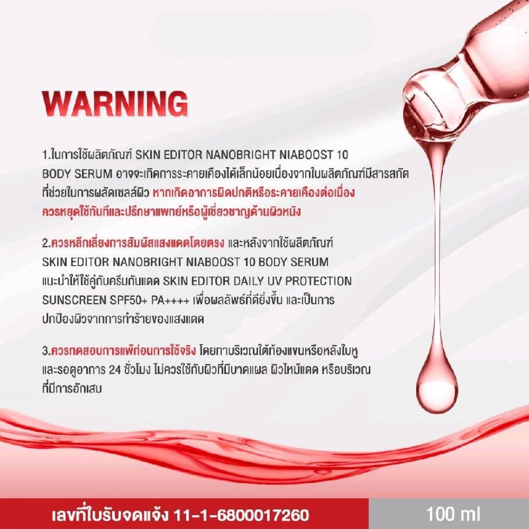 Brighten, hydrate, and smooth your skin with the power of 10% Niacinamide — only with Skin Editor Nanobright Niaboost Body Serum!