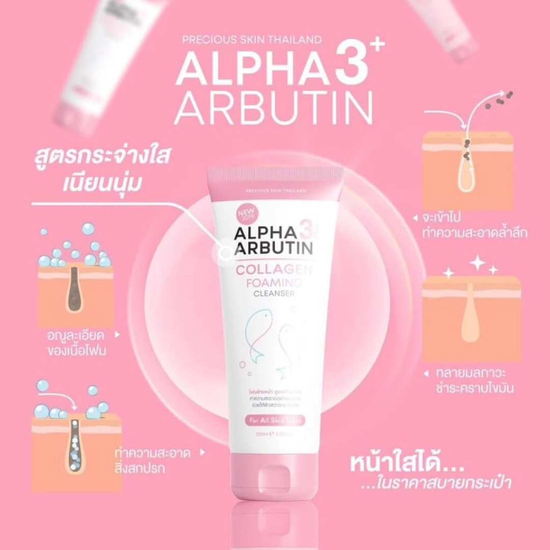 Experience gentle yet effective daily cleansing with Precious Skin Alpha Arbutin 3+ Collagen Foaming Cleanser — a luxurious, whipped-foam facial wash that deeply purifies, brightens, and nourishes skin. Powered by Alpha Arbutin to visibly fade dark spots, uneven tone, and dullness, combined with hydrolyzed collagen to maintain skin’s elasticity, softness, and youthful bounce. This mild, non-stripping formula removes excess oil, impurities, and makeup residue without disrupting the skin barrier — leaving the face feeling fresh, smooth, hydrated, and radiant after every wash.