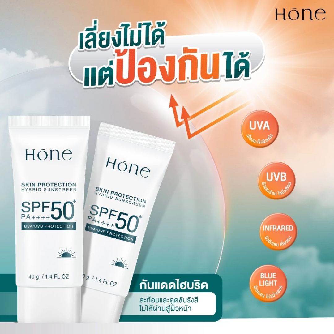 Make Hone Skin Protection Hybrid Sunscreen your essential daily step — lightweight comfort with advanced UV defense.