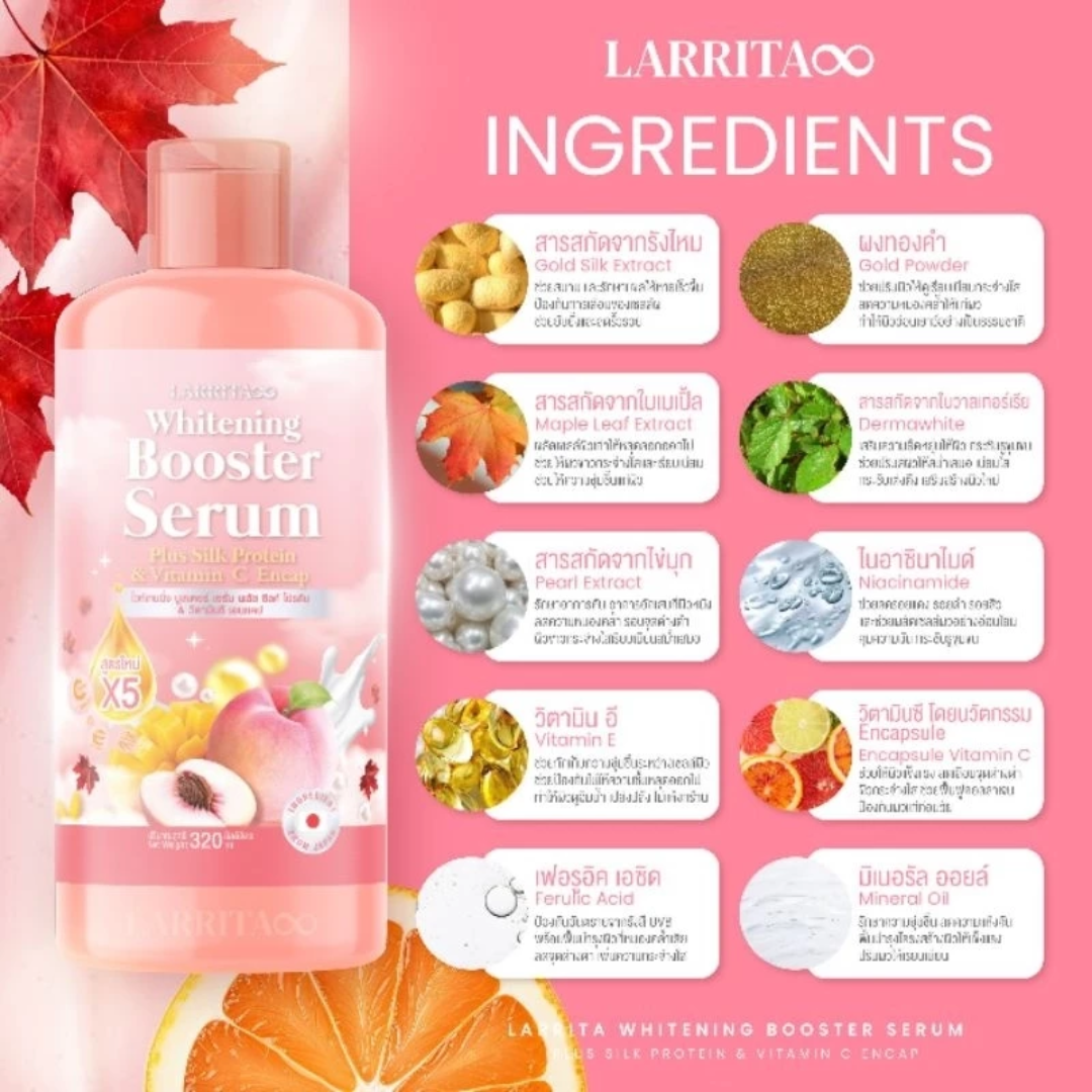 Pamper your skin with the luxurious touch of Larrita Whitening Booster Serum — achieve luminous softness every day!