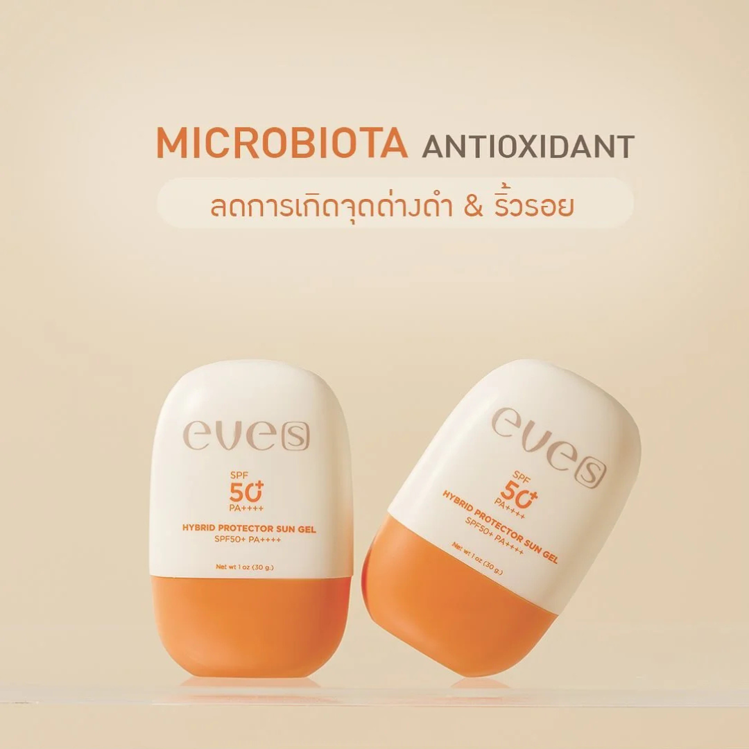 Eve’s Hybrid Protector Sun Gel SPF50+ PA++++ is a gentle, fast-absorbing sun gel formulated to help maintain skin comfort while providing strong UV protection. Its hybrid filter system helps protect against UVA/UVB exposure, while antioxidant-rich microbiota support helps keep the skin feeling calm and balanced. Ideal for daily use, the gel texture spreads easily, leaving the skin smooth without clogging pores.